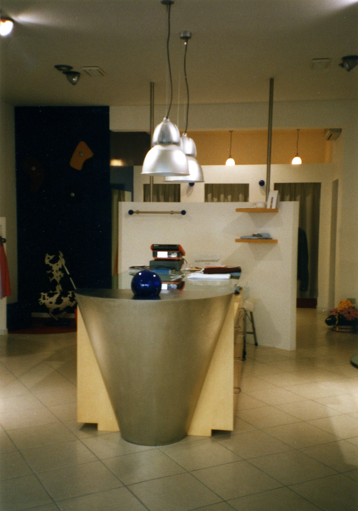 Negozio di abbigliamento caratterizzato dalle sfere blu in vetro di Murano che simboleggiano il mare e la vicinanza con Venezia.